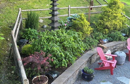 Our art-filled gem is recently renovated 2-bedroom, in-town apartment complete with a European-style luxury kitchen featuring Vermont marble counters. There are restored fir-wood floors, new carpeting and new paint everywhere, and brand new electrical-to-code wiring. We are air-conditioned and have toasty heating for winter. Complete with designer and heirloom furniture, antique and fine oriental rugs, nautical pieces, and original paintings by local artists; our second floor hideaway offers peace and quiet, privacy, and off-street parking with views to local shops and restaurants. Set up for work-at-home, we have high-speed internet and a work station overlooking a quiet street. across the street is a shared workspace for those who need more privacy. New landscaping, a garden sitting wall and seating; and Asian garden art line the stone pathway to the entrance to our little haven. New for fall of 2022 is a Solo Fire Pit for use in the garden and new Adirondack seating for four. Privacy fencing aesthetically separates our home from the new house next door. Soft garden & outdoor lighting guides you home at night.