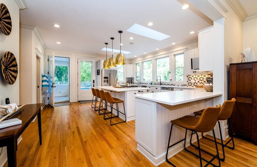 Four floor of living in this amazing property. The main floor boasts a lovely family room with seating for ten as well as a gas fireplace. Dining table seats ten plus island seating for six more. Fully stocked kitchen with the added bonus of an additional refrigerator for your group. Second sitting room/office has television and also a desk when you need to get back to reality. Primary bedroom with queen bed and en-suite full bathroom. Your laundry room and additional half bath also on main floor. Take your dining al fresco with your screened-in porch overlooking the pool and backyard.