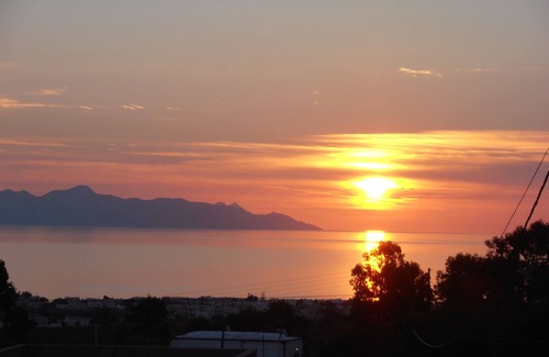 The unit opens out to the the large front patio with expansive views of the Aegean, the village and the surrounding mountains.