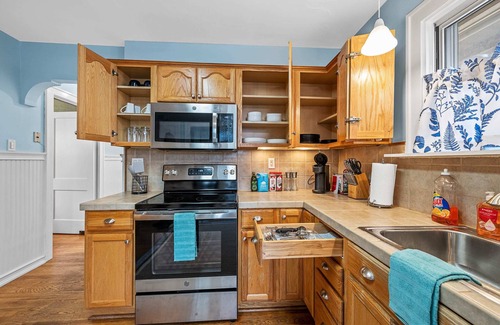 Feel at home and whip up your favorite meals in our fully stocked kitchen! Whether it's breakfast, lunch, or dinner, you'll have everything you need, from gadgets to utensils. We've got a full-size fridge/freezer, a gas cooktop and oven, a microwave, a coffee maker, and a dishwasher to make your stay as convenient as possible.