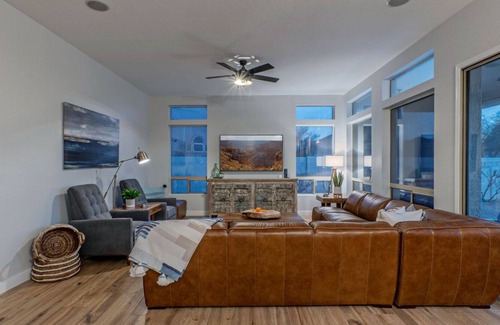 The great room features a sectional sofa and reclining chairs arranged to view the large smart TV. Stellar sunsets and views of the backyard oasis will compete for your attention. There is a Google-Nest Mesh system providing great Wi-Fi throughout the home.