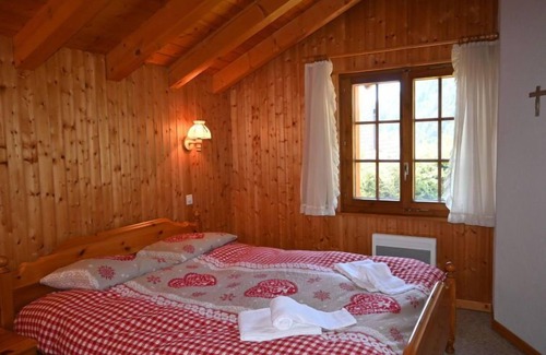 "Véronique", 5-room chalet 130 m2 on 2 levels, south facing position. Rustic and wooden furniture furnishings: large living/dining room with open-hearth fireplace and cable TV. Exit to the terrace. Open kitchen (oven, 4 ceramic glass hob hotplates, kettle, electric coffee machine, Capsules for coffee machine (Twin) extra, raclette grill, fondue Set (cheese)). Sep. WC. Upper floor: 1 room with 1 french bed (180 cm, length 200 cm). 1 room with 1 pull-out bed (2 pers. 2 x 90 cm, length 190 cm). 2 rooms, each room with 1 bed (90 cm, length 190 cm). Shower/WC. South facing position. Terrace furniture. View of the mountains. Facilities: washing machine, iron, hair dryer, logs (free). Internet (WiFi, free). Parking (1 car) at the house. Please note: non-smokers only.