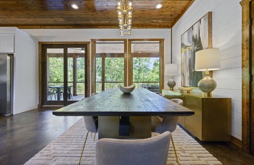 Gorgeous wood cabinets, sparkling state-of-the-art appliances, and beautiful natural light make the culinary paradise a lovely place to prepare delicious meals. Enjoy cooking in style using the modern appliances and cookware provided, then enjoy your meals on the spacious dining table or in the outdoor dining area with pretty views.