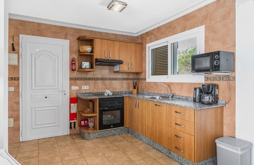 Overlooking the Atlantic, the holiday home Casita Canaria with step-free access and interior in Tías impresses guests with its fantastic views. The 150 m² property consists of a living room, a well-equipped kitchen, 2 bedrooms, and 1 bathroom, accommodating up to 4 people. Additional amenities include high-speed Wi-Fi (suitable for video calls), a TV, a washing machine, a dryer, and beach or pool towels. Gym equipment is also provided for your enjoyment. A baby cot and a high chair are available upon request. Air conditioning is available in the sitting room only. This vacation home features a private outdoor space with a heated pool, two terraces, a balcony, and an outdoor shower, making it ideal for relaxing and enjoying the outdoors.