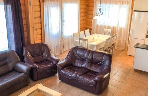 Laminated log house 2011. Downstairs: large living room/kitchen with sofa bed, bedroom 2 beds, hall, washroom, sauna, terrace on both sides of house. Upstairs hall area: 2 bedrooms 2 beds in each. Two extra beds which can be sited as desired.