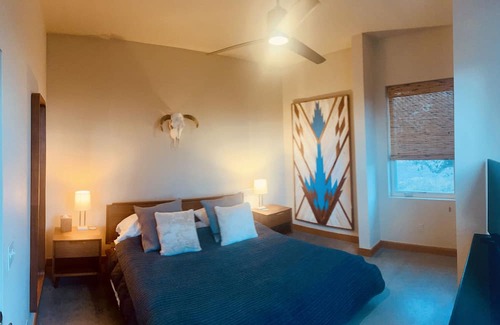 Welcome to the Valle Verde Mancos House! This modern bungalow style 2 bedroom/1 bath home sits on 4 acres of solitude with incredible views from the patio of the Mancos Valley, the La Platas and Mesa Verde. This home features a clean and simple feel with stainless appliances, modern furnishings and concrete floors. There’s a w/d in house and a wood burning fire place. Up to 2 dogs are welcome if you like to travel with your pets. Explore the San Juan Region! We are 30 minutes to Durango, an hour and a half to Telluride, just a 15 minute drive to Mesa Verde National Park, area trails and world class mountain biking, and a 5 minute drive to historic downtown Mancos, artisan shops and restaurants.