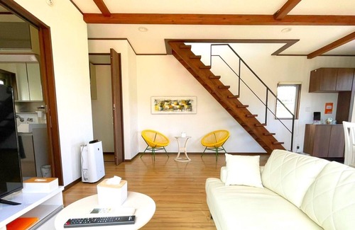 This spacious detached house is located a 2minute drive from Ichinomiya Beach and can accommodate up to 7 people