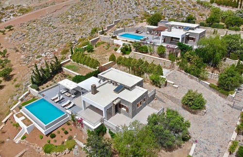Villa Almyra has an identical twin, Villa Kambos, right above it. Both villas have perfect sceneries and complete privacy.