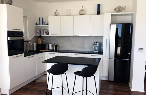 Potpuno opremljena kuhinja zajedno s otokom za pripremu hrane i nekoliko barskih stolica čini odlično mjesto za užinu ili doručak. Dobro je opremljen mikrovalnom pećnicom, perilicom posuđa, Nespresso aparatom za kavu, sokovnikom i aparatom za smoothie i ledomatom kako bi kuhanje bilo mnogo lakše i omogućilo vam više vremena za odmor.