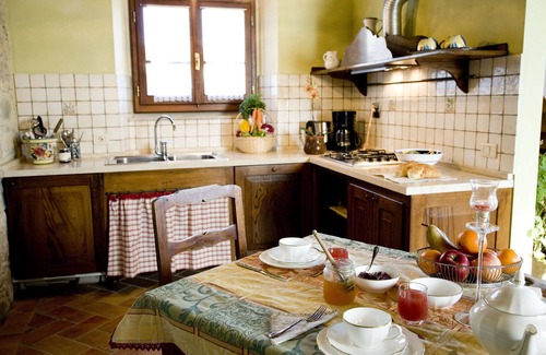 The cottage is located in the center of 12 ha of organic crops with orchard. The location in the Arno valley, near the river bank, offers a beautiful view of the Casentino hills. The inhabited centers of Poppi and Pratovecchio are approx. 3 km.