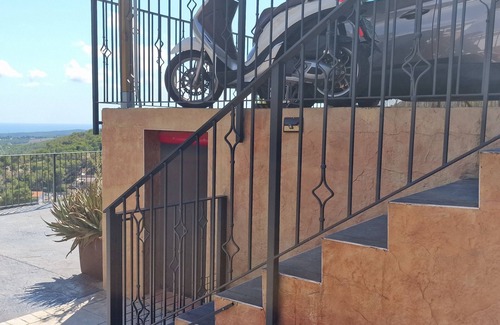 Our apartment has a beautiful sea view. Own entree, cozy sitting room with TV, large sitting/dining table and comfy chairs. The 2 bedrooms with airco, mosquito nets, double beds have their own bathroom with a shower, sink and toilet. A kitchen with a 2burner induction hob, combination microwave, fridge/freezer and a dishwasher. Char bbq, hammock, pool and various comfy seats in the garden. In consultation you can use the gym. Beautiful hike&bike trails. The center of Barcelona half an hour away!