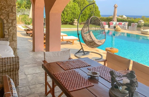 GreJo Porto Heli Villa is a villa with a private pool, 350m from the beach, situated in Agios Aimilianos village next to Porto Heli. It is a luxury property with all the amenities included and it can sleep up to 16 guests. Guests benefit from a huge terrace, an outdoor pool and landscaped garden. Free private parking is available on site. This amazing 6 bedroom, 7 bathroom villa has stunning ocean views and is one of our best properties. Book now!!