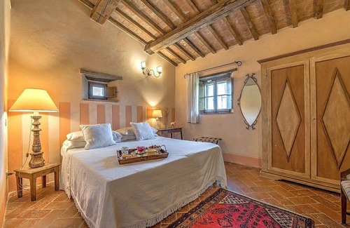Villa Irmina is a characteristic and welcoming two-story ancient tuscan country house surrounded by meadows and by green hills. It sleeps 12 people. From Villa Irmina you will enjoy an incredible view of the greenery and of the hills. Villa Irmina is 250 square meters (2690 square feet). It features a private swimming pool, a small private terrace, a private patio, a private garden, air conditioning (please read description below to check in which rooms the units are installed), winter heating and WI-FI Internet access.