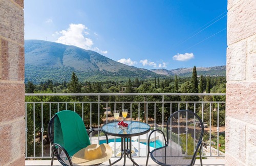 Surrounded by scenic mountain views and close to the pretty resort of Agia Efimia, Villa Joanna is a jewel in Kefalonia's crown. The countryside setting is sure to help you unwind and the villa is a great base from which to explore the north of the island. Head through the valley to Myrtos Beach, famous for its stunning scenery, or drive up to Fiskardo and visit the Venetian Harbour. This 3 bedroom villa is spread over 3 floors, with a private pool and plenty of balconies to relax and admire the views from. Pool heating, WiFi and air conditioning/heating in the bedrooms and lounge is included.
