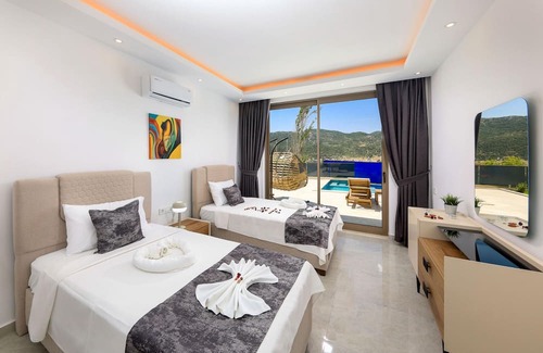 Welcome to Villa Taha, a contemporary 3-bedroom haven in Kalkan's Sarıbelen countryside Region, accommodating up to 6 guests. With a modern design on two levels, this villa seamlessly blends luxury and comfort.