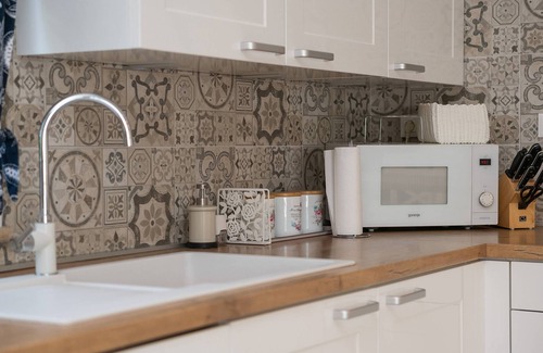 The house consists of a living room with a fully equipped kitchen and dining room.