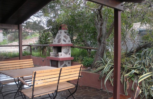 Casa Michela is a pretty and welcoming terraced house renovated in 2013, completely free on one side and independent SEA VIEW at 200m. from the delightful 'Is Cannisonis' cove, very suitable for children and at 2min. drive from the center with all services and 4min. from the beach with its splendid golden sand dunes and the 3km of beach served by kiosks and establishments. Casa Michela is located on the first independent floor with a courtyard on two sides and a private panoramic terrace equipped with a wooden pergola, table and 2 benches. Balcony with sea view. Tree-lined and illuminated. Barbecue, water reserve, cold outdoor shower, fountain, private parking space on the ground floor in front of the house. CHILDREN AREA with many games (house, slide, swing and many toys). Composed of living room-kitchen with bay window overlooking the sea (with double sofa bed); double bedroom and bathroom. Mosquito nets. ALL NEW appliances: TV, 5kg washing machine, microwave, fridge + freezer, 4-burner gas cooker + oven, radio, toaster, air conditioning (10 euros per day extra). Toys for the beach, hairdryer, iron.