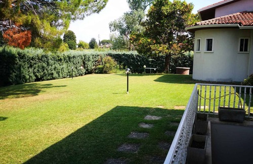 The villa built in 1970, was renovated in 2018 and is furnished in a modern style. The property is located in a residential area, on the outskirts. Also due to the view over the lake from the property and its quiet, sunny and secluded hillside location the domicile is popular. Available for your exclusive use: sunbathing lawn, parasol, sun lounger, barbecue facilities, terrace and garden furniture.LocationLazise, district Pacengo, 100 m above sea level. The villa is located on a 2500 sqm enclosed garden plot with meadow, flowers, shrubs and trees, bordered by a fence and a hedce. The landlord does not live in the house or on the property. ++ DOGS ARE ALLOWED BUT NOT IN THE POOL ++ Access is directly from the main road (asphalted). Parking (for 2 cars) is available in a garage. Specialair conditioning, central heating (gas).Facilities: baby cot, high chair, internet access (WLAN), Wii, iron and washing machine. TV reception takes place via satellite.For your safety, the accommodation is equipped with CO2 detector and fire extinguisher. PoolAll pools are available for exclusive use. Outdoor pool (usable from early April to end of October, 13 m x 6 m, depth 2 m). Dogsallowed, EUR 50.00/pet per week. DistancesShopping 500 m (3 km in winter), restaurant 400 m, town center 500 m. airport in Bussolengo 25 km. Lazise: railway station, thermal bath, sauna, doctor each 3 km. pharmacy, bank each 500 m. cinema 5 km. discotheque in Peschiera del Garda 8 km. Railway line 3 km. Main road 200 m. Children's playground 400 m. In summer: Veneto Lombardy 250 m in Lazise (beach 300 m in Lazise featuring meadow, sand and gravel). Lazise: water sports, boat launch each 400 m. boat rental 500 m. Pacengo: tennis 3 km and golf 4 km. DivisionVilla, 2 floors, 5 rooms (including 4 bedrooms), 250 sqm, in total 8 beds, on request additionally 1 child up to 2 years in a baby cot. RoomThe entrance to your villa is located on the ground floor, is covered, at ground level and wheelchair accessible and leads directly into the porch with wardrobe and doors to all rooms. Living room (40 sqm) with TV, dining area (8 seats) and access to the loggia. Bedroom (14 sqm) with 1 double bed. Bedroom (14 sqm) with 1 double bed and 1 baby cot. 2 bedrooms each (14 sqm) with 2 single beds. American kitchen (25 sqm) with gas stove (5 flames), oven, extractor hood, fridge (90 l, icebox), coffee machine, electric kettle and access to the terrace. Bathroom (12 sqm) with shower, 1 washbasin, WC, bidet and window. 3 bathrooms each (6 sqm) with shower, 1 washbasin, WC, bidet and window. Terms of lease and pricesIncluded in the priceOutdoor pool, babycot, internet access, baby cot, gas, water, Air conditioning - please order at booking, Wireless Internet access. Side costs-Costs on the spot:/Obligatory:electricity 0,50 € per kilowatt hour based on usage. final cleaning 300 € per object per stay. local tax by local tariff (if charged).On request:heating 2 € per cubic meter based on usage. electric bicycle 40 € per bicycle per day. Bed linen (please order at booking) 7,50 € per person per week. Towels (please order at booking) 7,50 € per person per week.Deposit:EUR 300,-/object.