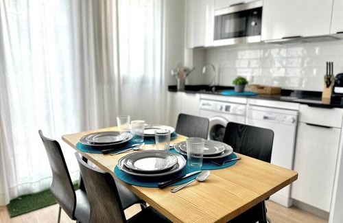 The kitchen is equipped with a ceramic hob, microwave, large refrigerator, dishwasher, and washing machine, along with the essential kitchen utensils you may need during your stay. Feel like a movie night? Enjoy the Smart TV with major streaming applications to access with your own user and relax just like at home. Also, benefit from high-speed fiber optic internet connection (300 mbps) in case you need to work comfortably during your stay.