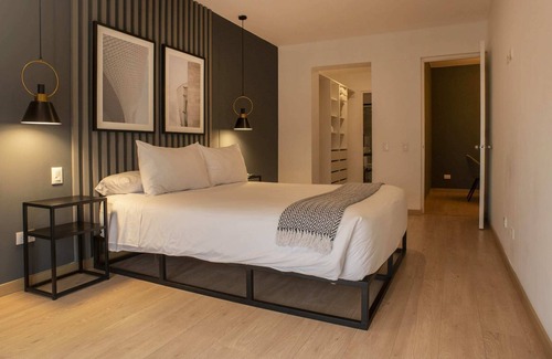 In the welcoming Miraflores neighborhood, this beautiful apartment it's very well located; just minutes away from Larcomar shopping center, Parque Kennedy, Virgen de Fatima Parish, and exclusive gyms. The area has currency exchange services, and labs centers in case you need to take a test, such as ROE and Multilab.