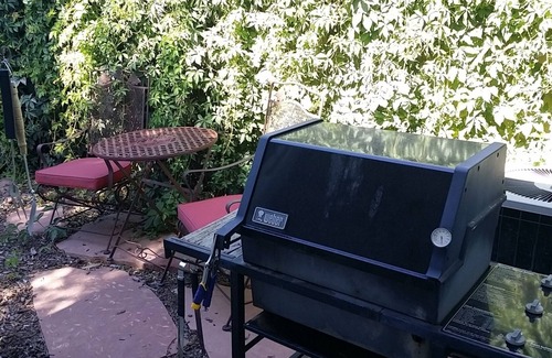 This is a Basement suite in a 3-level town home. It includes a Bedroom with Queen bed night stands and dresser, Full bathroom, Cozy Den with two large recliners & Gel fireplace, a bistro table and chairs, Kitchenette with Coffee maker, Fridge, microwave and dishes. Shared laundry room. The suite is recently renovated and decorated in Rustic fashion. Amenities are internet access, two TV's with roku streaming. You will enter through the front door with the push button code lock. Rental includes access to the enclosed patio and yard which has a small private fenced yard including a gas grill. There are 2 parking spots next to the garage. You will be renting the basement and we occupy the main floor and upstairs bedrooms.
