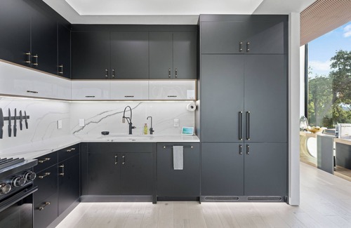 Wander Austin Skyline is a stunning modern urban retreat, combining luxury with the best of Austin’s city vibes. This home features a chic outdoor pool, a hot tub, a sauna, and a BBQ area. Enjoy panoramic views from the rooftop, unwind in the spacious guest house, or entertain in the well-equipped game room with a pool and a golf-simulator. With elegant design throughout and high-end amenities, this home offers a luxurious escape with the energy and excitement of Austin just moments away.