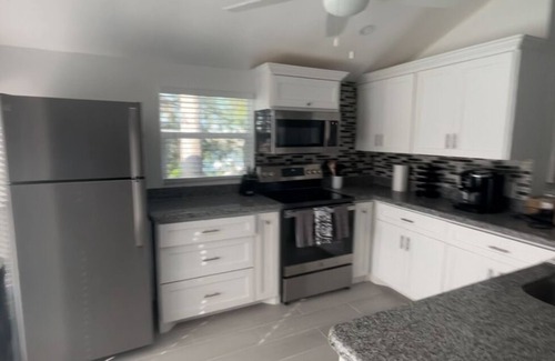 Water Front Newly Remodeled 2br/2ba cottage. Centrally located. Outdoor patio. Fish and kayak off the back dock. WiFi, Big screen TV, new appliances, fridge with ice maker. Coffee maker with keurig. Pool/hottub close by. 18 hole par 3 golf course with fee. There’s a $90 fee per stay for security/amenities.