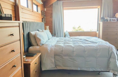 The interior exudes a cosy and comfortable ambiance, featuring an open-concept layout that invites the soothing natural light and cool breezes inside. For those cooler nights light the fire inside whilst listening to the sounds of nature and the ocean. The living room is tastefully furnished with comfortable seating and large windows that showcase the ever-changing scenery of the estuary.