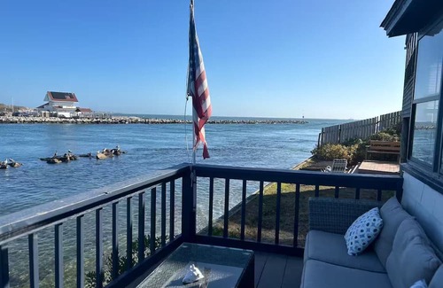 Watch the boats go by and keep an eye out for gray seals , while relaxing on the spacious deck of this charming and rustic waterfront cottage built in 1930 with incredible views of Block island sound and Galilee across the Point Judith Channel.