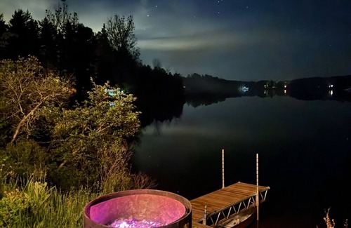 Peace and serenity surrounded by Nature! 95 feet of waterfront shoreline perfect for fishing or just relaxing by the water. Take the canoe out and explore this cute little lake. You might even see a some otters, a turtle or two or even the local beaver down the creek! The kids can explore the "tree house" with attached zipline! Enjoy your complimentary tea or coffee in the solarium. The walk-out basement provides easy access to the lake and fire pit area. TV with internet and lots of classic games to keep you and your family entertained on inclement weather days. Outdoor skating trails at Patinage en Forêt only a 3 min drive away and skiing at Vorloge or Edelweiss only 25 min away for those Family Winter Getaways! Oh, and don't forget to show the kids the neat vintage telephone and test it out by making a real phone call to someone!