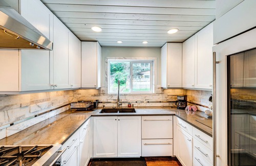 Make lifelong memories at this lakefront vacation rental in Bellingham! The 4-bedroom, 3.5-bath house has a spacious interior with ample room for your group to spread out, a full kitchen, and on-site access to Lake Samish. Choose your favorite balcony to sip your morning coffee, then make a splash off the dock with the kids! Ready to venture out? Tee off at Lake Padden Golf Course or explore Larrabee State Park.