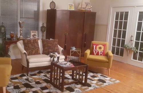 Family comfort of home. Country atmosphere.Large kingsize bedroom, 2 larger living room spaces, Large kitchen, Zen/workout room, and a full shower bathroom. Screen porch off the kitchen. Large front porch. Large front and back yard.