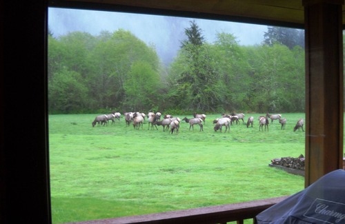 The Elk House is the Quinault Rain Forest's best kept secret and we are back in business! This 2 bedroom, 2 bath open-concept home was built in 2006 and sits on 4 acres of private land for you to enjoy and explore. It's hard to decide where the yard ends and nature begins. Barbeque on the 280 sq. ft. covered porch and watch for Roosevelt Elk that often graze in the front field, sometimes as close as 30 feet from the house! Get cozy next to the gas fireplace under 17 foot vaulted ceilings and watch for bald eagle, black-tail deer and great blue heron--regular visitors of the property. Enjoy the outdoor fire pit area and stargaze on clear summer nights. Explore nearby Zeigler Creek, picnic under a giant Maple tree and take leisurely walks around the property. The Elk House property is tranquility at it's best!