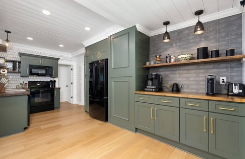 Inside, you'll find a spacious, fully equipped kitchen complete with a butler’s pantry, formal dining area, and beautiful pocket doors that hint at the home's heritage. The living spaces are warm and welcoming—perfect for families, groups, or a quiet getaway.