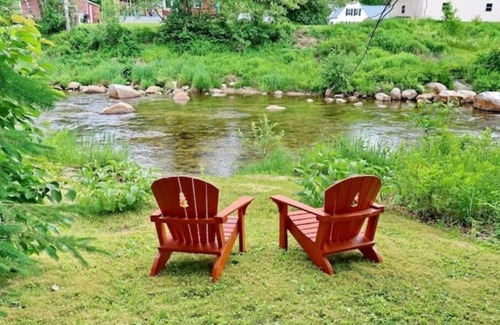 Hidden Gem on 2+ acres w/direct Ammonoosuc River Frontage, sleeps 6. Now with air conditioning.This meticulously maintained, custom post & beam cabin is surrounded by beautiful perennial gardens has a storybook setting. Home is located on the snow mobile trail and is only 5 miles from Bretton Woods/ Mt Washington Hotel for golf, spa, skiing, horseback riding… Cabin has been newly furnished & is meticulous appointed. Sleeps 6 comfortably in 2 King bedrooms plus additional twin over full bunk bed in the lower level family room.