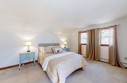 The home's interior is full of character, and you can spend evenings snuggled in front of the gas fireplace, using your log-ins to stream shows on the big, smart TV. Whip up delicious treats in the well-equipped kitchen with fun extras like an ice cream maker, popcorn maker, and blender. You'll find toys, games, a high chair, and a Pack-N-Play to keep the little ones entertained and cared for. Stay cool with the window air-conditioning units; a private washer/dryer adds that extra dose of convenience.