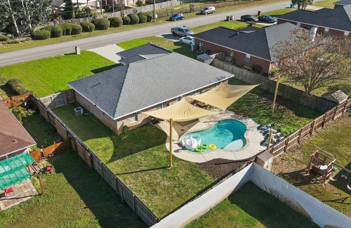 Please contact us if you are snowbirds or travel professionals! WELCOME to the Whispering paradise in beautiful Navarre FL! This is a 4 bedroom 2 full bath vacation paradise with private HEATED POOL & GAME ROOM. Pets are welcomed! This house comes with selfcheck-in, Free high-speed Wi-Fi, Free parking, stainless appliances, laundry onsite, and a fenced backyard ready for entertaining family and children. Conveniently located 5miles to Navarre beach, 13miles to Fort Walton Beach, 31miles to Destin, and 32miles to Pensacola airport. We'd love to host for you!