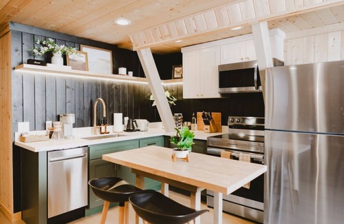 Welcome to Greenery Mountain Retreat in Skykomish! Nestled amidst breathtaking mountain vistas, this designer cabin blends modern comfort with natural beauty. Featuring two spacious bedrooms, two bathrooms, and elegantly appointed living spaces flooded with natural light, every moment here is serene and inviting.