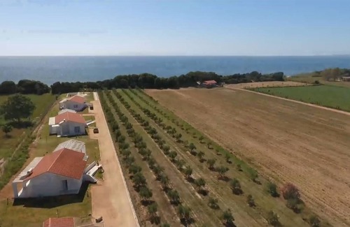 Modern architecture * Elegant interior design * Open roof truss * Spacious terraces * Community pool * Tennis sand court * Well-maintained outdoor facilities on an approx. 5,000 sqm, enclosed and completely fenced property with direct access to the sandy beach. Designed by A & M Manolopulos, Amaliada.