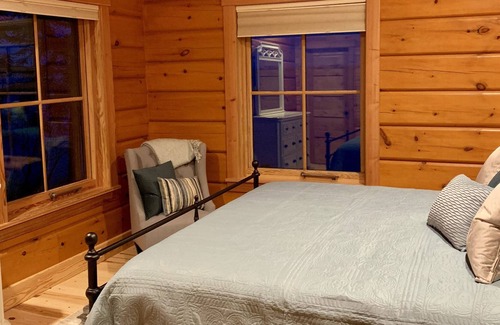 Our home sleeps 8 people with three bedrooms. Our master suite is upstairs facing the lake with large windows in front of the king sized bed. The master suite also features a walk-in closet, large bathroom with double sinks, walk-in shower, and large soaking tub. The second bedroom has a queen bed and is facing the lake on the main floor with a large bathroom across the hall. Main floor bathroom has large soaking tub and walk in shower. Our third bedroom has two twin built in beds and is on the second floor. This bedroom is facing south and has a view of Lake Superior.