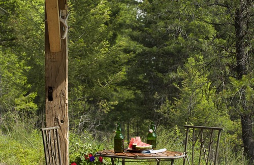 If you prefer not to venture far from the Guest House/Cabin, you can hike on the trail down to the three acre spring-fed lake with a private dock where you can enjoy swimming, fishing and kayaking. Fishing poles, a tackle box and two kayaks are provided along with paddles and life jackets for our guests.