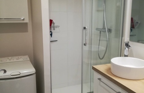 Near the sailing club, with a sea-facing terrace, the apartment is located on the first floor of a quiet residency.