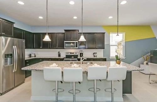 8 BD 6 BT villa in Windsor At Westside Resort. Fully equipped kitchen, pool, patio, and spacious deck. Upstairs loft with TV, pool table, and air hockey. Free WiFi and cable TVs in all rooms. Sleeps up to 16. Optional pool/spa heating. Access to clubhouse with pool, restaurant, splash park, fitness center, and more. Professional vacation rental agency prioritizing guest safety and comfort. 7 miles from Walt Disney World.