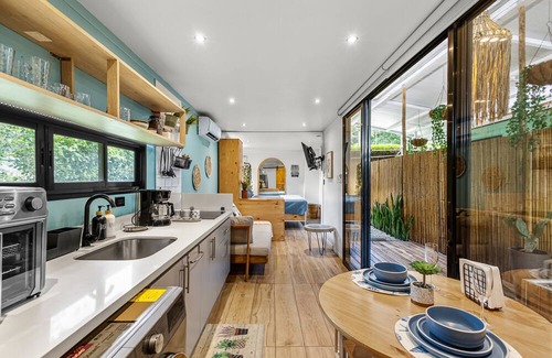 -Two fully equipped kitchens: induction cooktops, air fryer/oven, refrigerator, microwave, toaster, kettle, blender.