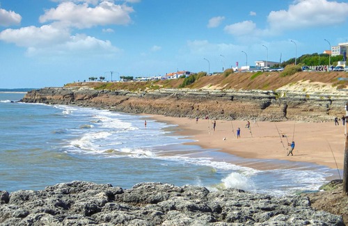 Away from the Atlantic coast, move into an apartment full of character. Here you can still feel the charm of the past, thanks to old ceiling beams, stone walls, the architecture or the old well in the courtyard. Here is the communal pool, perfect for a morning refreshment before you start another day full of impressions in the Département Charente-Maritime.