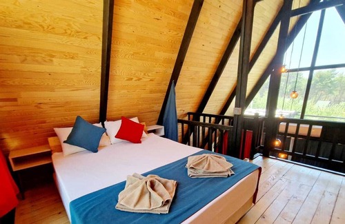 This A-Frame property is made entirely of natural wood and is one of only16 villas at the Benim Koy complex. The villa is well-equipped with a kitchen that is open plan to the lounge area. Free Wi-Fi, dishwasher, washing machine and TV are there to compliment your stay. There are two bedrooms - 1 x twin room on the ground floor and 1 x double room on the first floor, the bathroom with a Combination Shower - Rainforest and Standard shower heads, is also on the ground floor, this is where the washing machine can be located.