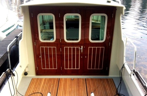 Our “Mirabel” is the smallest of our comfortable Linssen Dutch Sturdys. Like all our boats, it is easy to maneuver. Among other things, it particularly impresses with its teak deck, which was renewed in 2014. The generous cockpit invites you to wonderful hours for two.