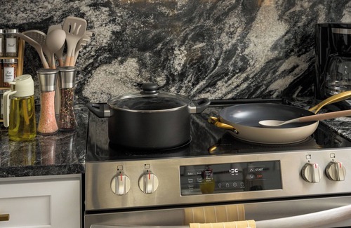 ✔ Crock pot, air fryer, toaster, cheese board, and all the cookware you need