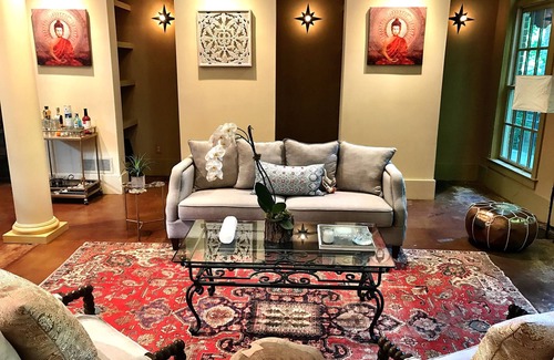 SANGHA HOUSE is a beautiful 3 story town home in the heart of Serenbe. Each floor overlooks a protected wooded area studded with birds and full of meandering streams. The premiere walking trails of Serenbe are simply steps away from your front door. Owned by a mindfulness-based psychotherapist & international wellness guide and her husband, this space has been energetically created to help you let-go and reclaim the joy of living.