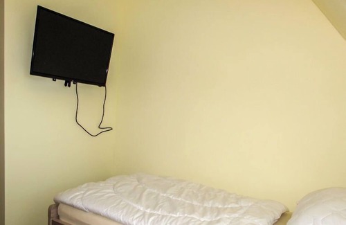 3-room apartment 60 m2 on 2 levels, on the upper floor. Object suitable for 2 adults + 2 children. Cosy furnishings: upper floor: living/dining room with sloping ceilings with Scandinavian wood stove, dining table, satellite TV and hi-fi system. 1 room with sloping ceilings with 2 beds and satellite TV (flat screen). Kitchenette (oven, dishwasher, 4 ceramic glass hob hotplates, toaster, kettle, microwave, electric coffee machine). Shower/WC. 2nd upper floor: open gallery with sloping ceilings with 2 beds. Oil heating, underfloor heating. Terrace 20 m2. Terrace furniture, barbecue. Facilities: baby cot. Please note: non-smokers only. Smoke alarm. On the ground floor, lounge with satellite TV and shower/WC for rent (arrangement on site). Instead of an enclosed bedroom, some sleeping areas are located in an open-plan area (gallery, alcove, etc.).